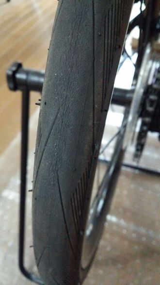 タイヤがカチカチに固いので綺麗な舗装路では抵抗なく転がり気持ちがよいです。