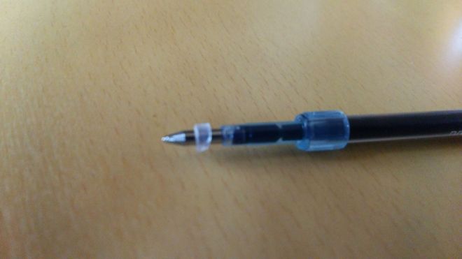 切り出した「輪っか」をスペーサーとして替え芯の先っぽに通す。あとは普通に装着すればOK!