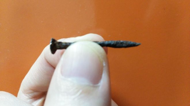 道路脇に落ちていた釘。見つけた時はなるべく拾うようにしてます。
