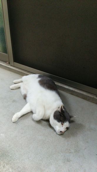 おねだりしたり、威嚇したりしながら相模川の野良猫は逞しく生きているようです。猫はしばらくの間私の近くで丸くなって休んでいました。画像はその時のもの。